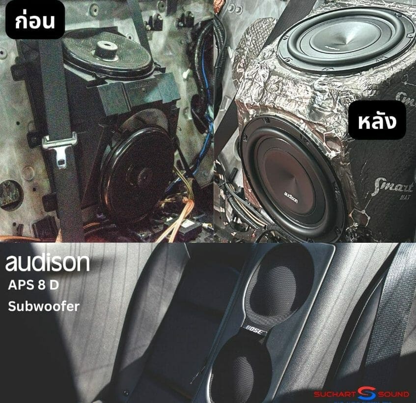 ซับวูฟเฟอร์ สองดอก ขนาด 8″ เพิ่มเสียงเบสหนักแน่นยิ่งขึ้น ของ 𝗔𝘂𝗱𝗶𝘀𝗼𝗻 𝗔𝗣𝗦 𝟴 𝗗 ติดตั้งแทนซับเดิมมากับรถ ของ BOSE ได้อย่างลงตัว