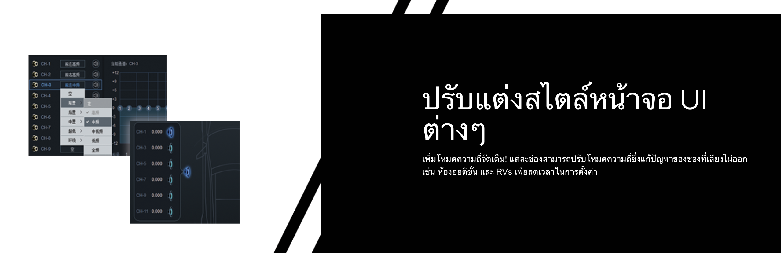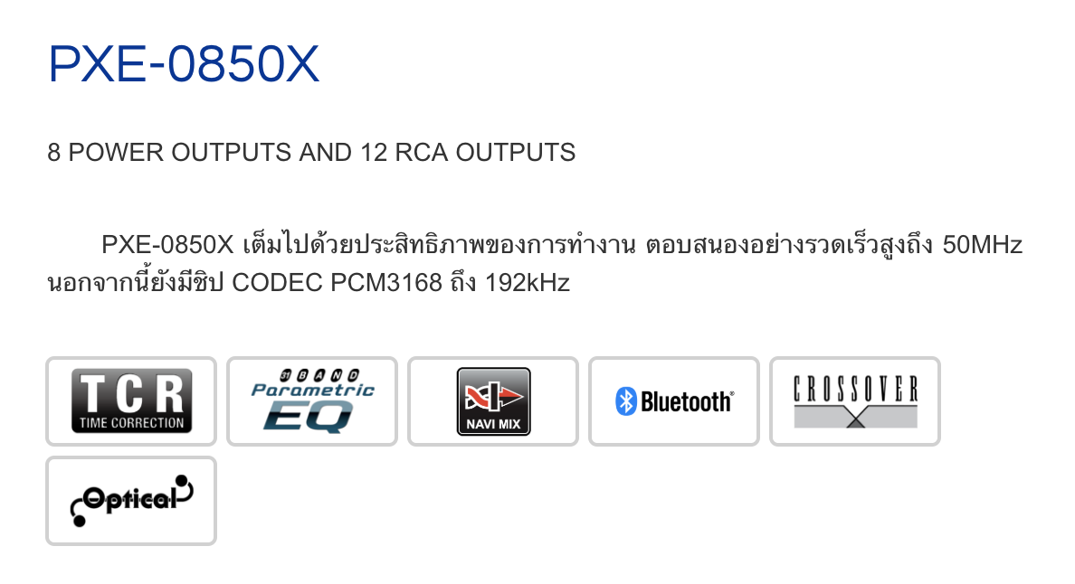 • 8 POWER OUTPUTS AND 12 RCA OUTPUTS • up to 50MHz • Bluetooth signal input • 31 Bands parametric EQ • Highly configured audio CODEC chip PCM3168, with 192kHz