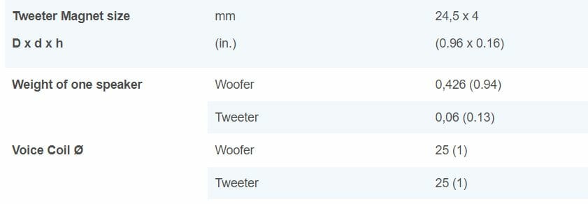 Tweeter: The Audison BMW tweeter has the largest dome of any BMW replacement tweeter – while still snapping into the same mount as the OEM tweeter. The Audison 29mm dome has 34% more surface area than a 25mm dome, and that means more output, a lower resonant frequency, and greater low-frequency extension. Most BMW replacement tweeters have 25mm domes – only Audison offers this improved performance. Audison R&D used a Tetolon silk/Cotton blend for light weight and improved damping. The tweeter uses an inline crossover filter in plug-and-play upgrade applications, and can also be used in fully-active configurations. An adapter is included to fit this tweeter into certain rear-deck fitments, where the stock tweeter is angled forward.