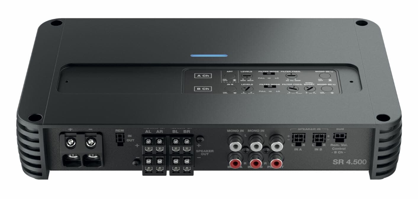 Audison Class D also uses a steeper 4th-order analog lowpass filter, rather than the simpler 2nd-order lowpass filters usually used in competing designs. The steeper filter will keep noise much lower in amplitude – which is good for controlling EMI and for preventing infrasonic noise getting to the tweeters. It also keeps phase shift outside the audible range. The cost is higher – twice as many components are needed for a 4th order filter compared to the usual 2nd-order filter, and each output channel needs its own filter – but Audison determined through exhaustive listening testing that this design was the best-sounding approach.