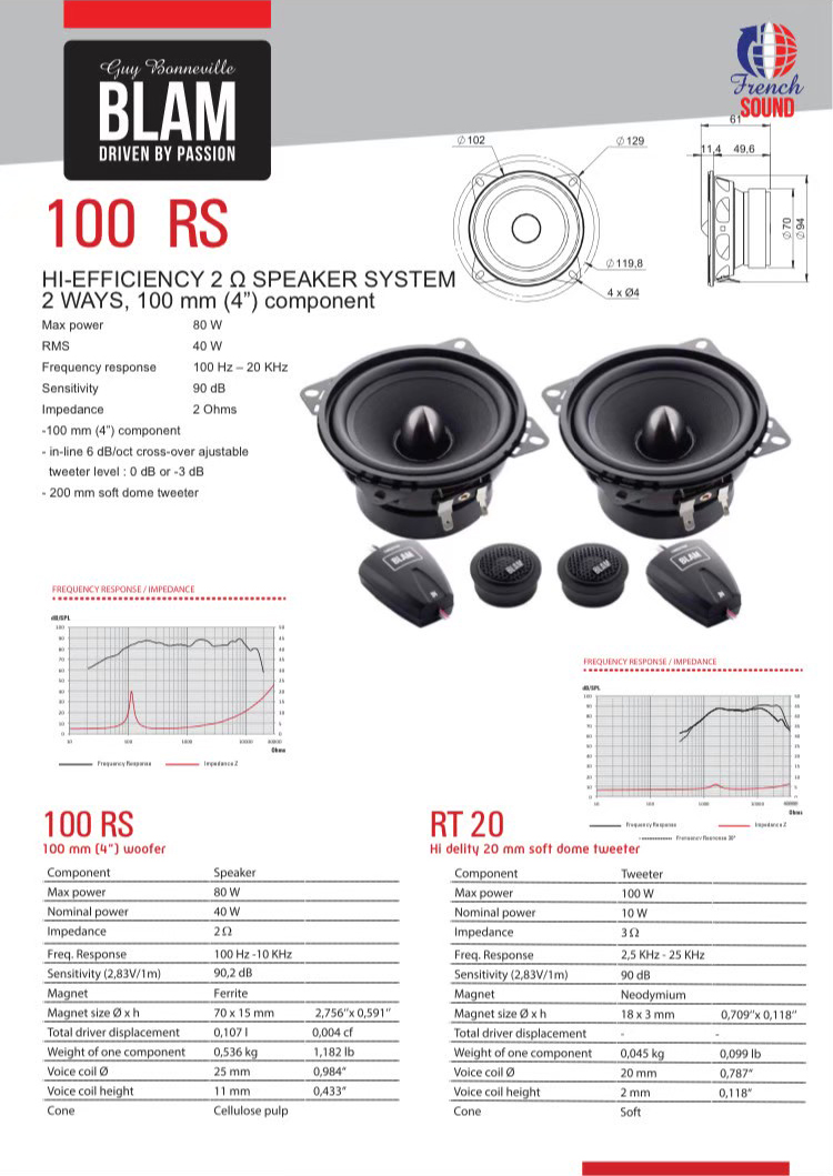 • Sensitivity 90 dB – Impedance 2 Ω